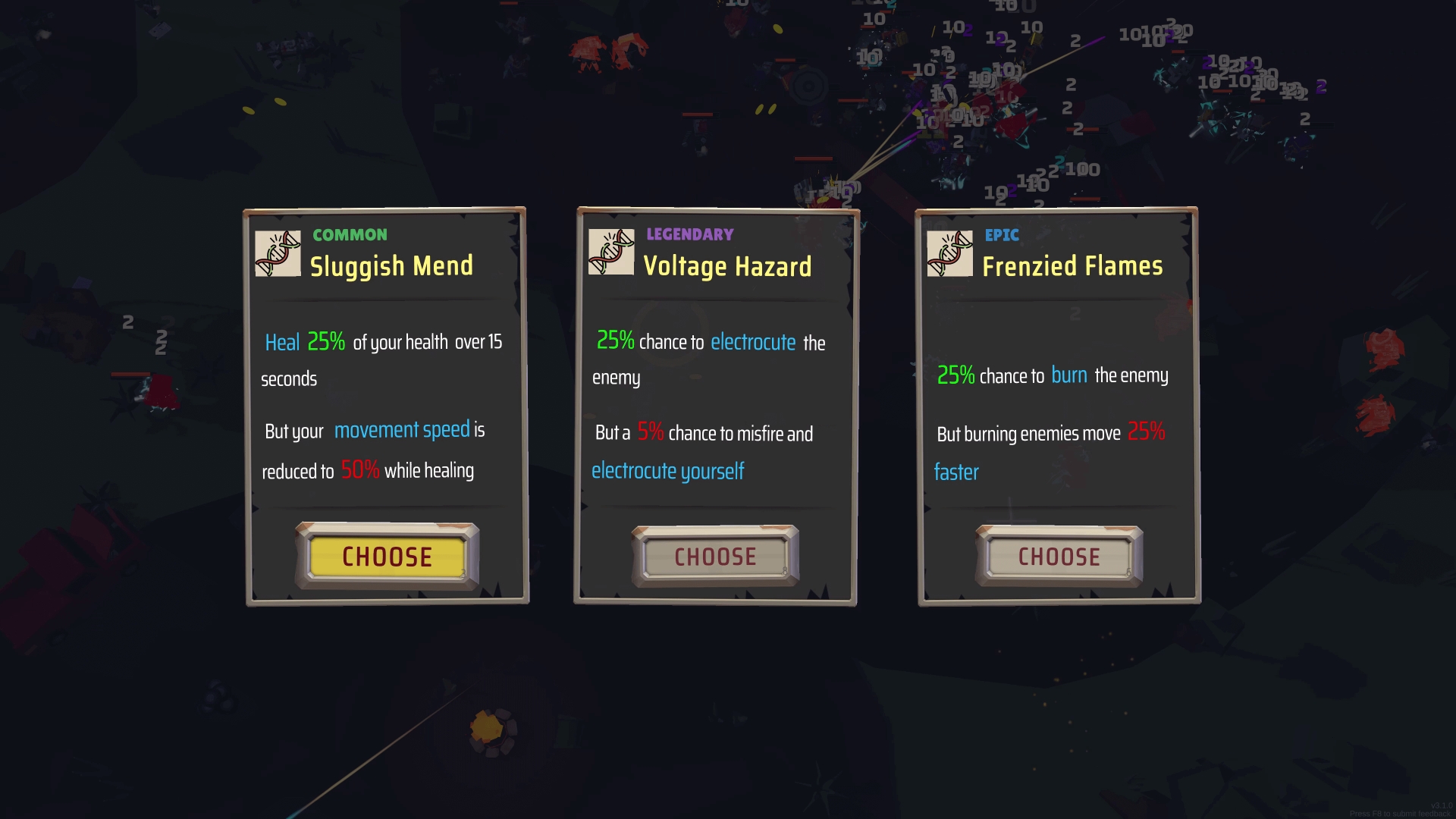 Choose from a huge pool of mutations mid-run. Will you evolve to leech health, ricochet bullets, or leave trails of acid in your wake?